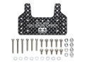【 マシンのセッティングや性能アップに役立つパーツです 】アップダウンのあるコースでは欠かせないパーツの一つブレーキセッティング。ブレーキスポンジを貼る面積が大きく、ローラーと干渉しにくい形状のカーボン製ブレーキステーです。マスダンパーなどが取り付けられる多くの穴が用意されています。軽く強度の高いカーボンプレートは独特なパターンがレーシングムードを高め、タミヤマークや製品ロゴをホワイトで印刷されています。別売のブレーキスポンジを貼って使います。マシンの前後に使用可能。ME、MA、MS、VZ、FM-A、AR、VS、スーパーII/X/XX/TZ-Xシャーシ各車に取り付けできます。※印刷が取れるため、クリーナー等は使わないでください。