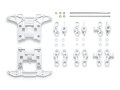 【 マシンの性能アップやドレスアップに役立つパーツです 】軸受け部分を別パーツ化した構造でホワイトカラーのポリカABS樹脂の強化タイプです。軸受けパーツはノーマルトレッド、ワイドトレッド、520ベアリングの3種類が用意されていて、コースに合わせたセッティングが楽しめます。T-04はバンパーの上下に各種FRPプレートが装着可能で MSシャーシに使えます。★強化素材のため、ビスのしめこみがきつい場合があります。