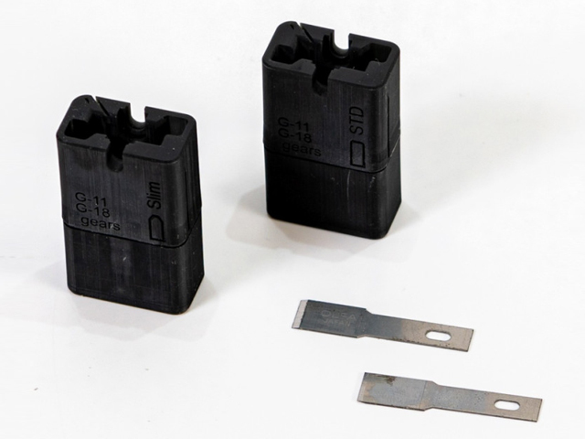 ・スパーギアの面取りの大きさを2種類の本体でストレスなく変更できます。・クラウンギア、ギア内角の面取りを行えます。・一度のギヤ取付けで両面の面取りが可能です。・カッターはOLFA XB157H製平刃を使用。