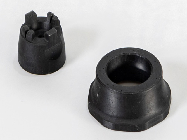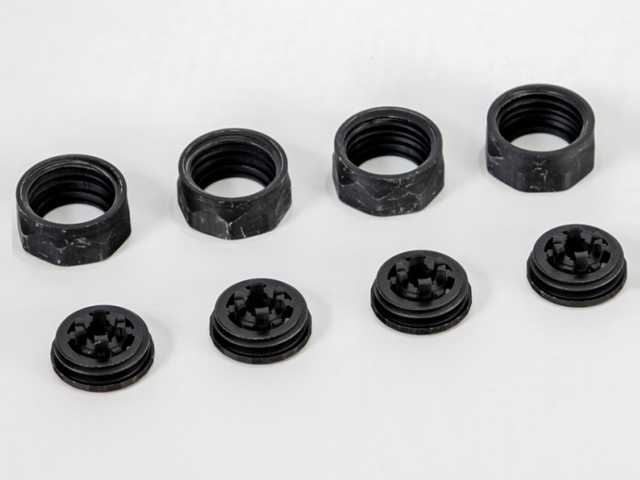 【マシンの性能アップやセッティングに役立つパーツです】Yスポークデザインのカーボン強化ホイールとスーパーハード小径ローハイトタイヤ(26mm)を4本ずつ、1台分がセットされています。カーボンファイバー配合樹脂製のホイールは強度が高く、跳ねにくさも特徴です。タイヤはキット標準タイプに比べて硬く、ローグリップのため、コーナリング時にスピードが落ちにくく、ジャンプの後の着地でもマシンが跳ねにくくなります。カラーはタイヤ、ホイールともに精悍なブラックで小径タイヤを装着したミニ四駆、ミニ四駆PRO各車に使えます。※タイヤが硬いので、ホイールに強く押し込んではめ込みます。