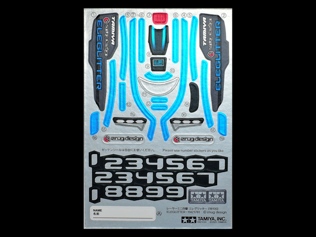 【 ミニ四駆の可能性を広げる近未来スタイル 】シャフトドライブ四輪駆動を採用した高性能レーサーのプラスチックモデル組み立てキットです。エレグリッターは、『アストラルスター』や『ライキリ』を手がけた根津孝太氏デザインのマシン。近未来のオープントップフォーミュラレーサーをイメージした、ワイド&低重心のフォルムがインパクト抜群です。また、存在感ある前後のフェンダーは脱着式として、軽量化とスタイルチェンジの楽しみを両立。コクピットにはSFムード満点のドライバー人形が乗り込みます。シャーシは軽量・小型で実戦向きのVZを採用して、レースでの活躍も期待十分。さらに、12本スポークタイプの本体と脱着可能なエアロディスクの2ピースで構成した、小径ローハイトホイールも注目。ライトブルーとグレイのコントラストが目に楽しく、メカニカルなデザインも魅力的。エアロディスクを取り外せば、印象を一変させることもできます。シルエットから足まわりまで、すべてが見どころのエレグリッター。近未来マシンがレースのワクワク感をいっそう加速させます。
