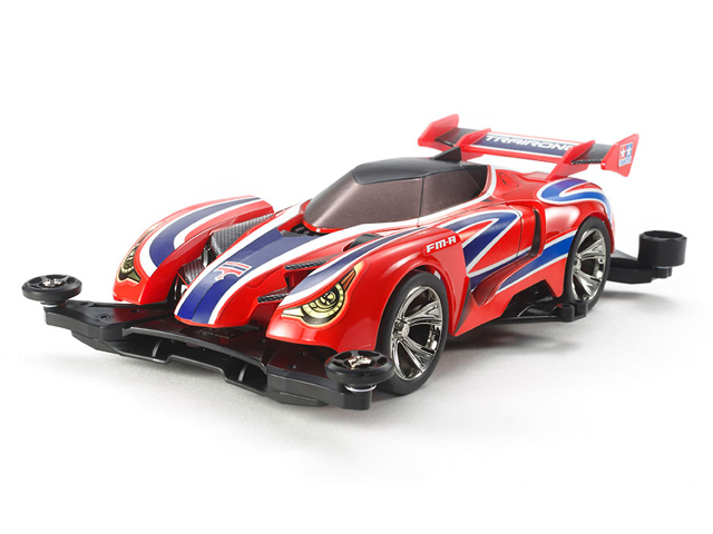 【 フロントモーターレイアウトのFM-Aシャーシを採用 】 シャーシはエアロデザインを取り入れたフロントモーターレイアウトのFM-Aが採用されています。重心が車体のフロントよりにあるのでアップダウンが多いコースでも安定感のある走りが可能です。フロント下部に低摩擦樹脂製のスキッドバーを標準装備されており、4個のローラーは低摩擦樹脂製となっています。リヤローラーは安定性を高めた8mm厚タイプとなっています。さらに、モーターはシャーシ底面から簡単に交換可能です。飛行機の翼の断面形状をヒントに作られたエアロサイドステーには様々なパーツが取り付けられます。シャーシ本体はABS樹脂製、アンダーパネルやスキッドバーなどのAパーツは低摩擦樹脂製です。どちらもブラックで統一した実車ライクな仕上がりで、質感あるスモークメッキを施したAスポークホイールにはローハイトタイヤがセットされています。3.5:1の超速ギヤ、モーターつき。全長=156 mm