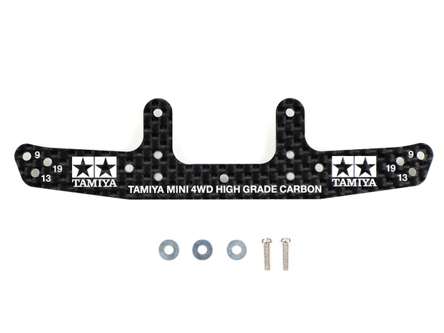 【 マシンの性能アップやセッティングに役立つパーツです 】 ローラー装着位置を広げられるリヤステーです。FRPプレートに比べて強度が高く、走行時の変形がほとんどない、軽く強度の高い3mm厚カーボンプレート製で 直径9、13、19mmのローラー装着時に、全幅を規定いっぱいに設定でき、走行安定性を高めます。マシンのレーシングイメージを演出するカーボン模様に、HIGH GRADE CARBONやタミヤロゴ、ローラーサイズのホワイト文字が鮮やかです。取り付け用ビスとワッシャーもセットされています。 ※印刷が取れるため、クリーナー等は使わないでください。